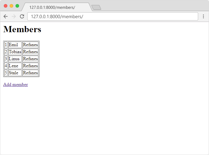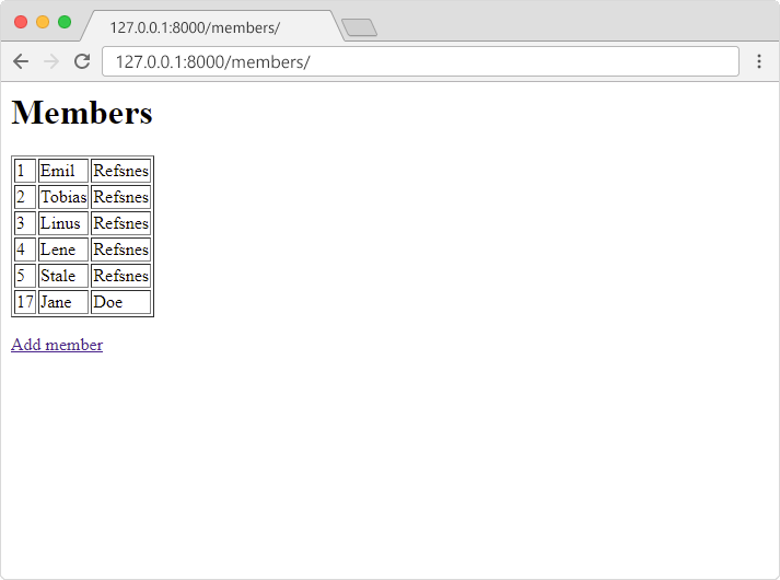 So far we have created a Members table in our database, and we have inserted five records by writing code in the Python shell.