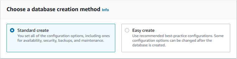 Once you have started creating a database, you will be given some choices for the type and settings of your database.