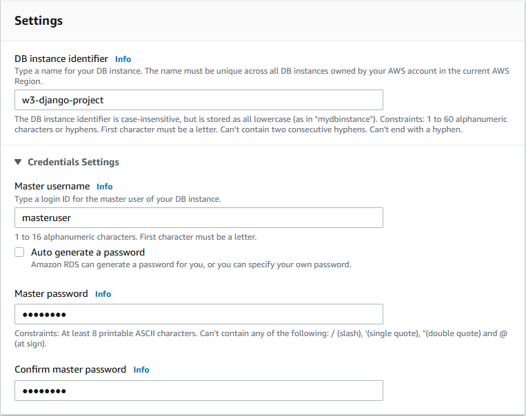 Give the securtity group a name, we will call it "w3-django":