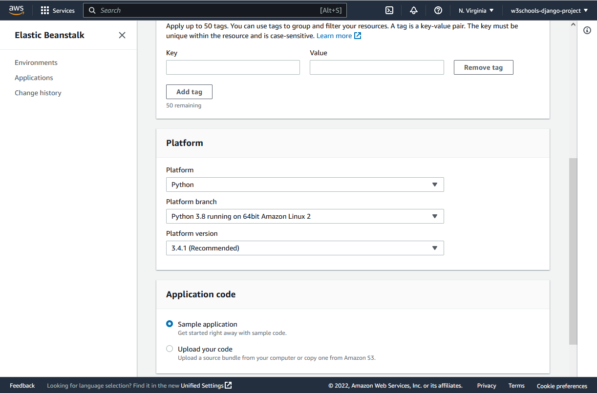 Finally the project is live, and you can view it by clicking the link below the Myfirstdjango-env header, or type the host address in your browser: