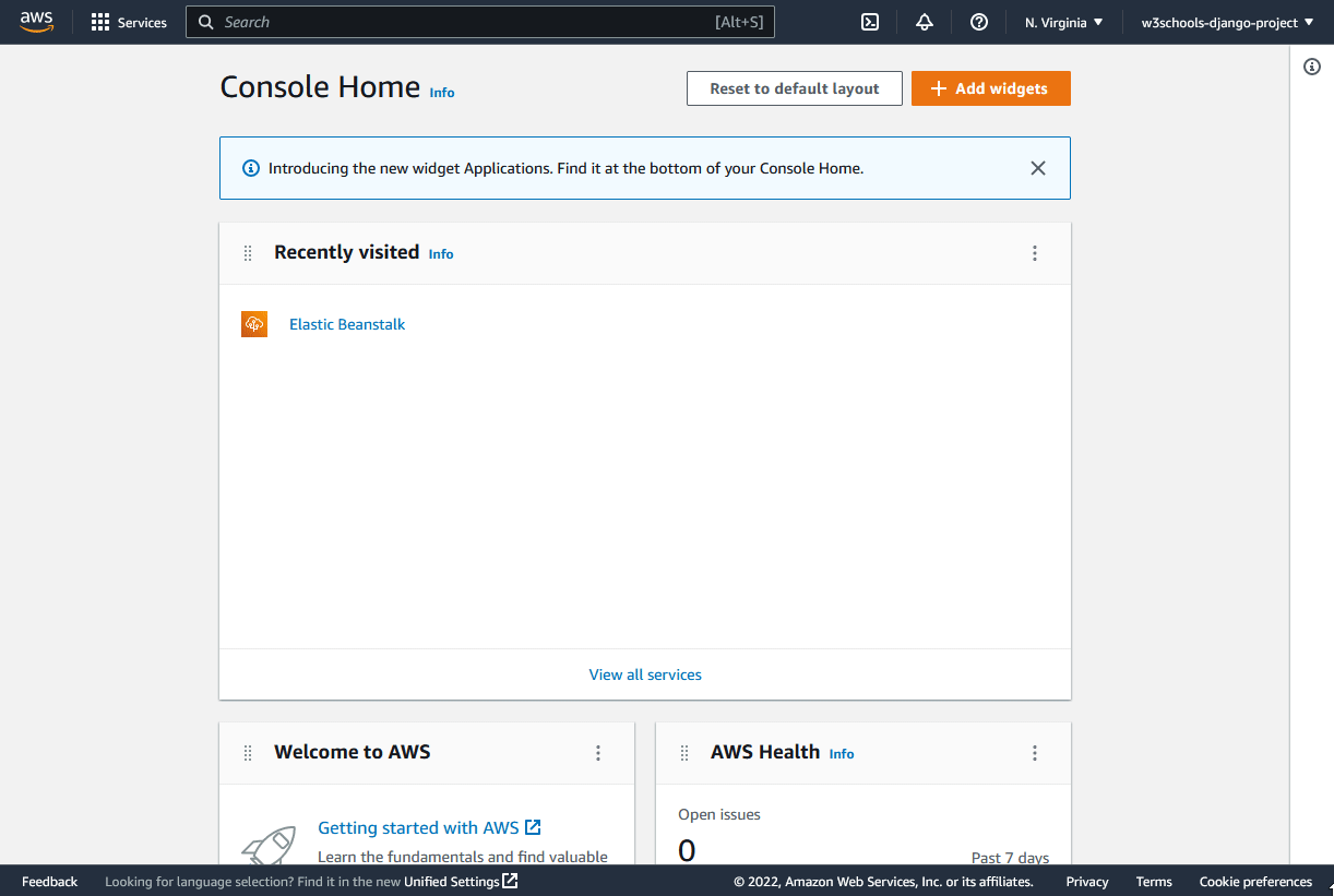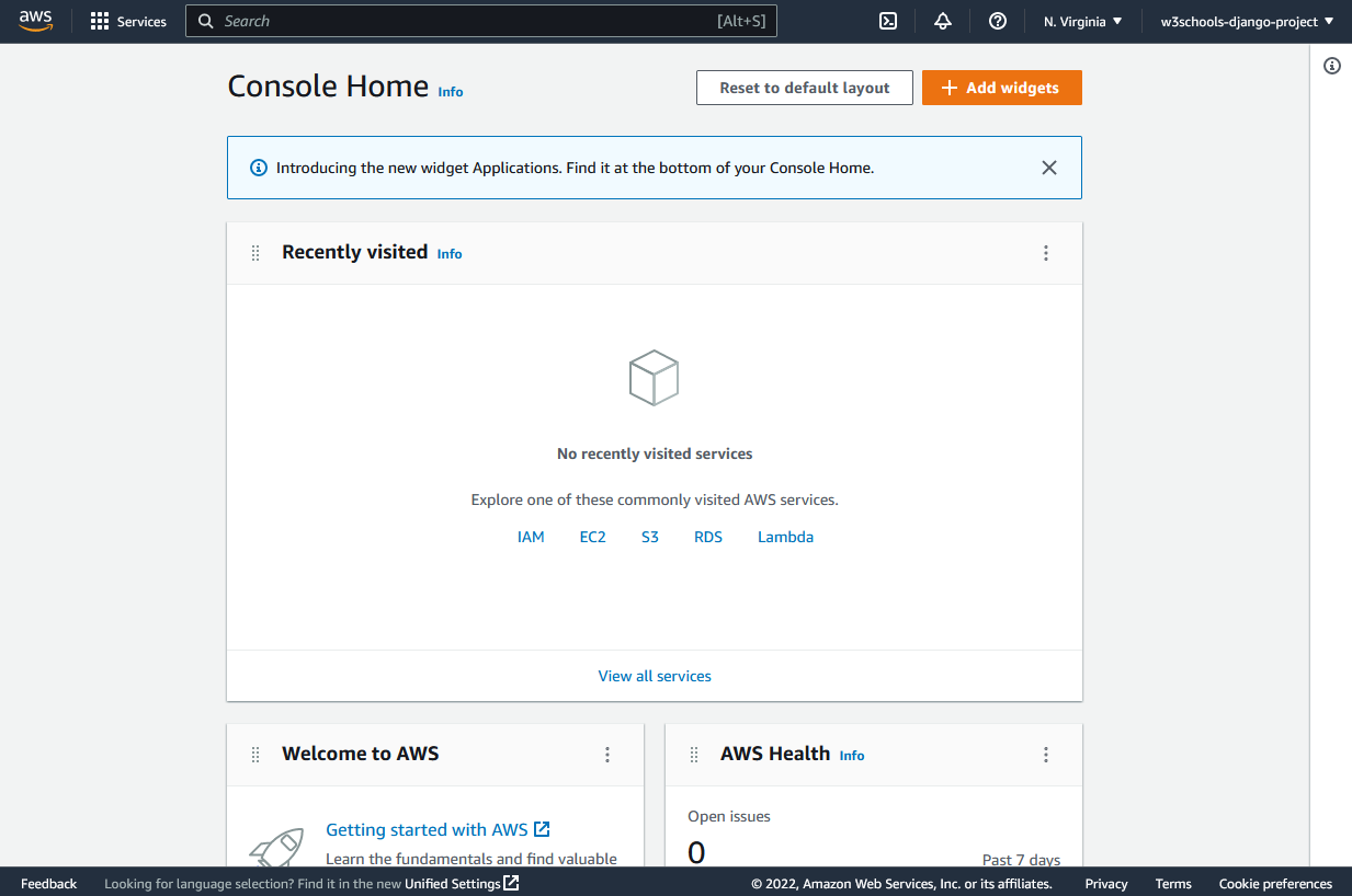 Once you have signed in, you should be directed to the AWS Console Home page:
