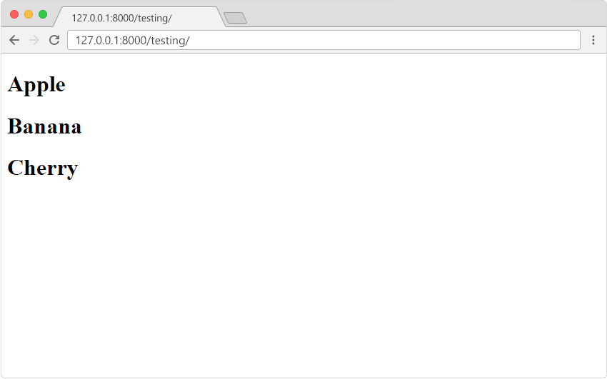In the browser window, type 127.0.0.1:8000/testing/ in the address bar.