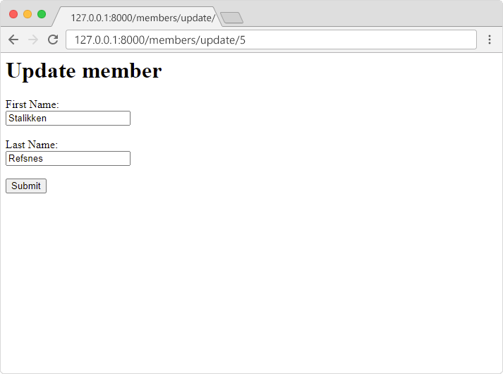127.0.0.1:8000/members/update/ to the right location,