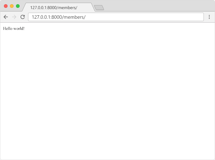 In the browser window, type 127.0.0.1:8000/members/ in the address bar.