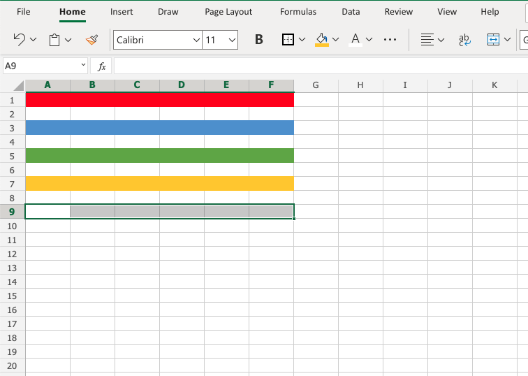 A9:F9 - Open color options