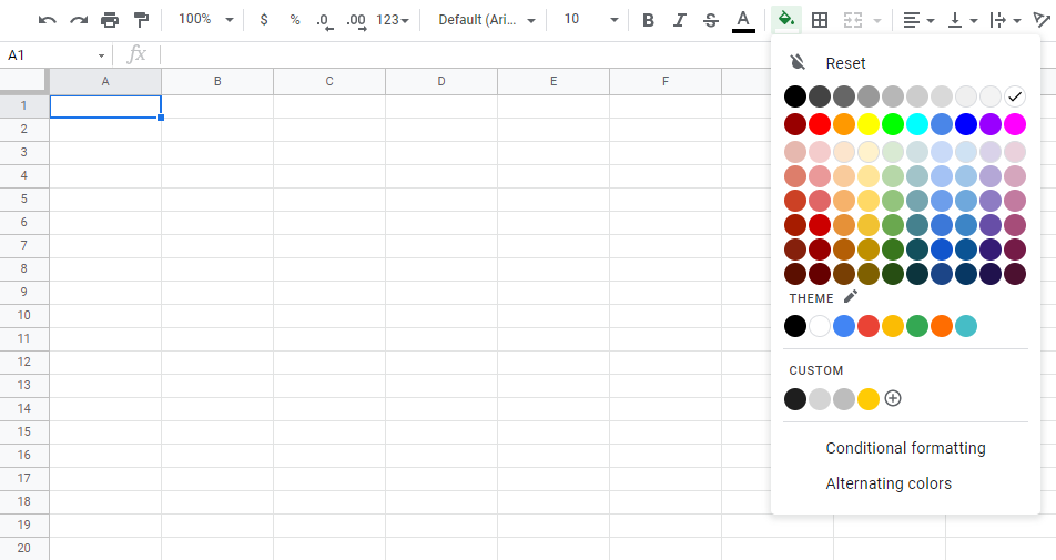 Google Sheets Format Colors