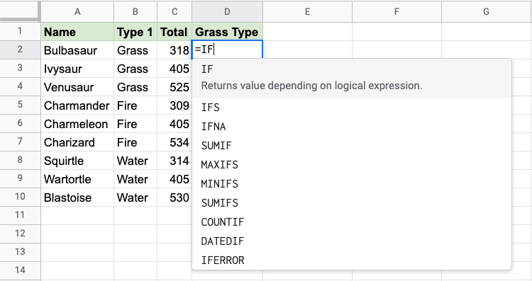 The IF function is a premade function in Google Sheets, which returns values based on a true or false condition.