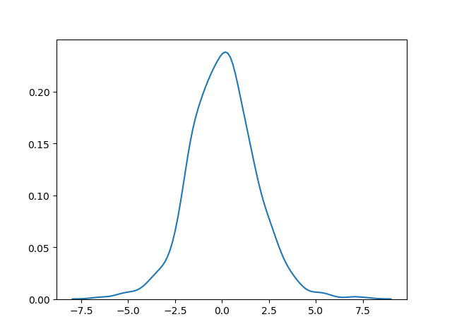 sns.distplot(random.normal(scale=2, size=1000), hist=False,