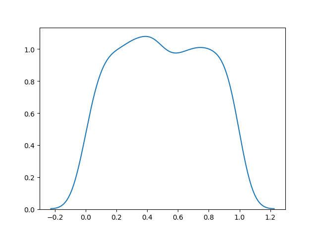 sns.distplot(random.uniform(size=1000), hist=False)