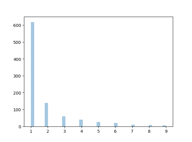 Sample 1000 points but plotting only ones with value < 10 for more meaningful chart.
