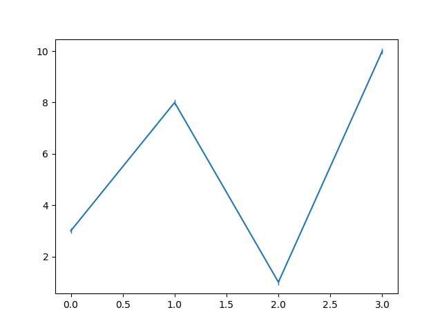 #Three lines to make our compiler able to draw: import sys import matplotlib matplotlib.use('Agg') import matplotlib.pyplot as plt import numpy as np ypoints = np.array([3, 8, 1, 10]) plt.plot(ypoints, marker = '|') plt.show() #Two lines to make our compiler able to draw: plt.savefig(sys.stdout.buffer) sys.stdout.flush()