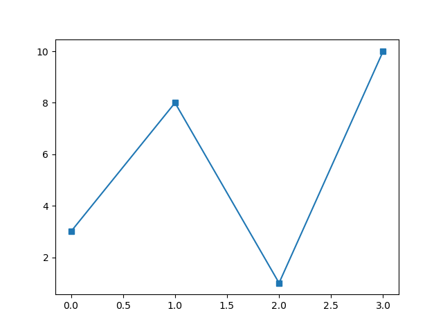 #Three lines to make our compiler able to draw: import sys import matplotlib matplotlib.use('Agg') import matplotlib.pyplot as plt import numpy as np ypoints = np.array([3, 8, 1, 10]) plt.plot(ypoints, marker = 'o') plt.show() #Two lines to make our compiler able to draw: plt.savefig(sys.stdout.buffer) sys.stdout.flush()